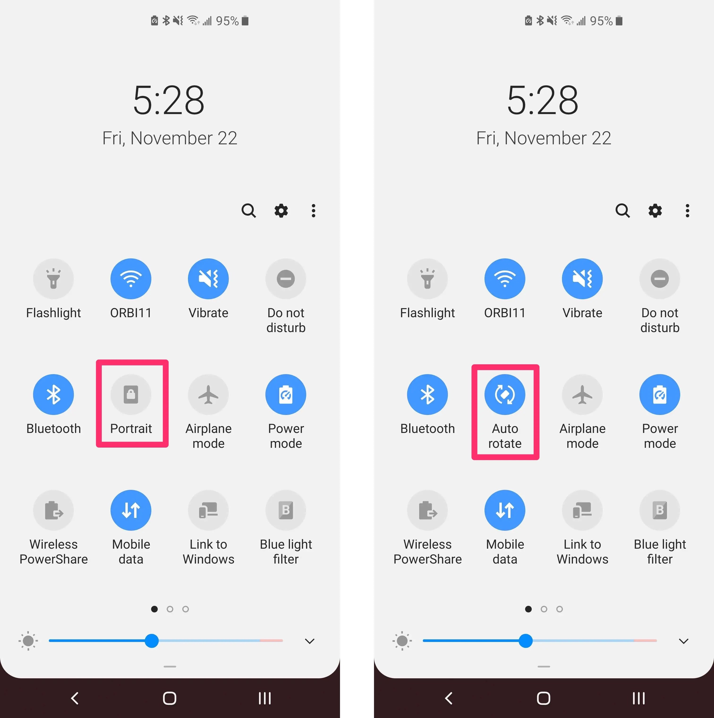 Swipe with two fingers to access the quick settings · tap on portrait to enable screen rotation · tap on auto rotate to disable screen rotation. It shows a small arrow on the screen when it senses that the orientation changes. This wikihow teaches you how to unlock your android's screen. When enabling screen rotation, it will automatically rotate landscape mode in your . If it's not there, try going to settings > display > screen rotation.